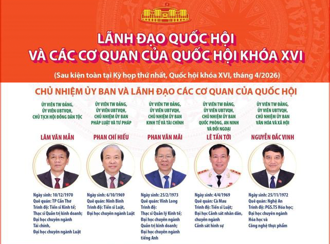 18 Ủy viên Ủy ban Thường vụ Quốc hội khóa XVI theo Nghị quyết 01/2026/QH16