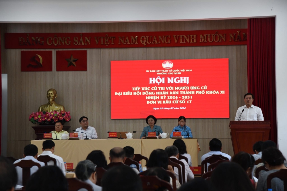 Chiều 5-3, Ban Thường trực Ủy ban MTTQ Việt Nam phường Chợ Quán (TPHCM) tổ chức hội nghị tiếp xúc cử tri với những người ứng cử đại biểu (ĐB) HĐND TPHCM nhiệm kỳ 2026-2031, Đơn vị bầu cử số 17.