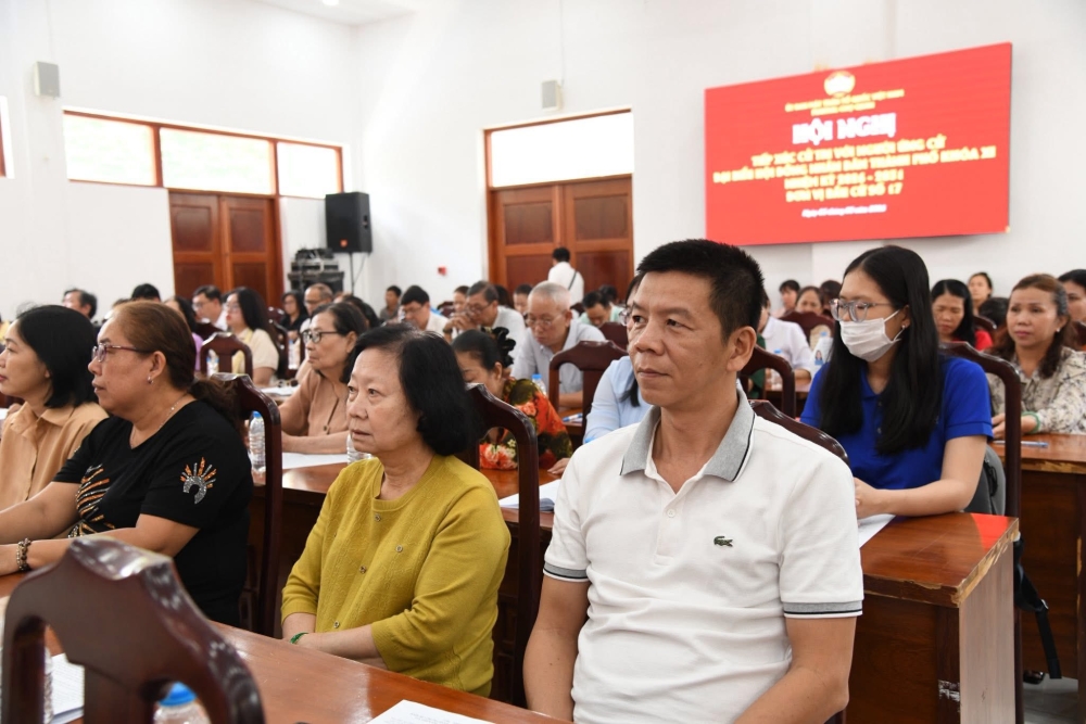 Tại hội nghị, 150 cử tri phường Chợ Quán đã lắng nghe tóm tắt tiểu sử và chương trình hành động của những ứng cử viên.