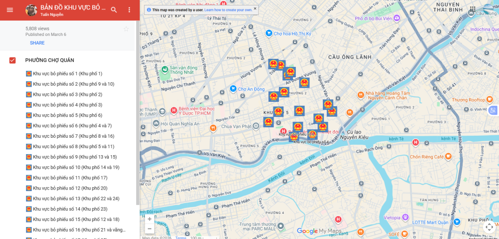 Nhằm tạo điều kiện thuận lợi để cử tri tra cứu và xác định địa điểm bỏ phiếu trong cuộc bầu cử đại biểu Hội đồng nhân dân phường Chợ Quán nhiệm kỳ 2026 – 2031, Ủy ban bầu cử phường đã xây dựng bản đồ số các khu vực bỏ phiếu trên địa bàn phường.