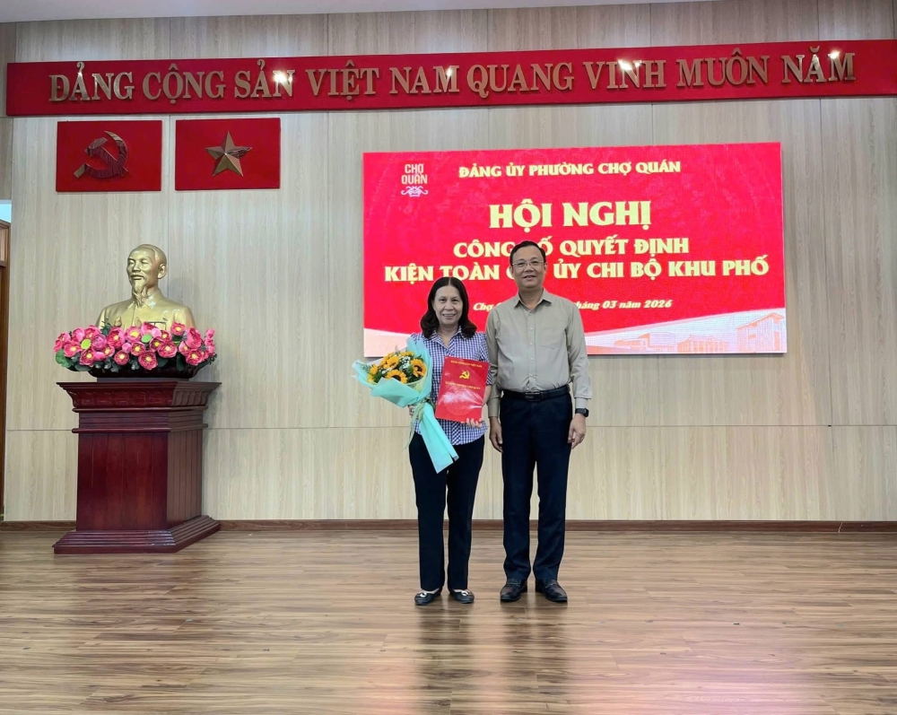 Ngày 10/03/2026, Đảng ủy phường Chợ Quán đã tổ chức Hội nghị công bố các Quyết định về nhân sự Bí thư, Phó Bí thư Chi bộ Khu phố.