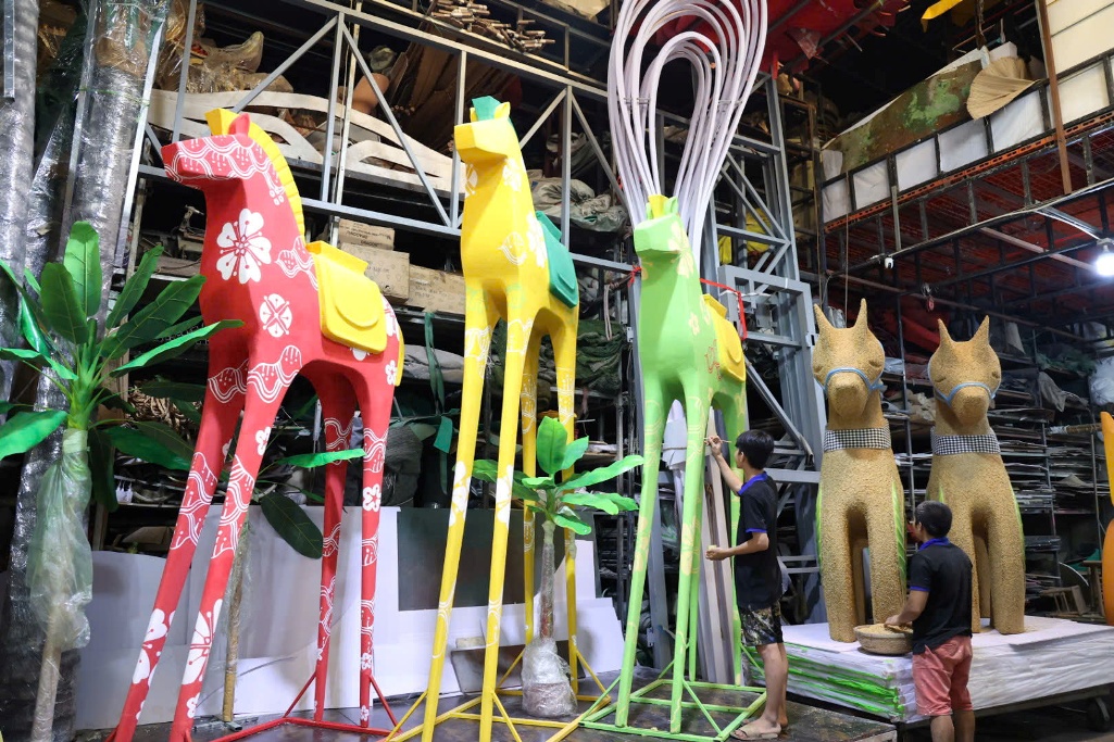 Thăm xưởng chế tác linh vật Đường hoa Nguyễn Huệ Tết Bính Ngọ 2026