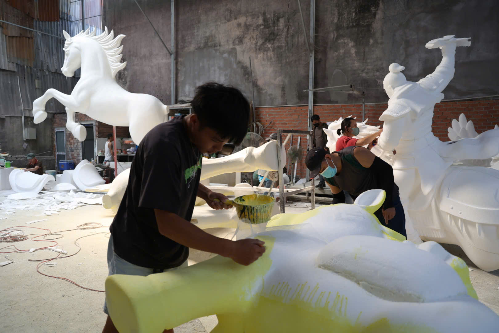 Ghi nhận của phóng viên tại xưởng chế tác của ông Đỗ Thái Bình, Giám đốc Công ty Thái Bình - đơn vị phụ trách thi công các linh vật ngựa nhỏ và cổng vòm của đại cảnh cuối mang tên "Giang sơn cẩm tú" không khí làm việc diễn ra khẩn trương. Những chú ngựa đầu tiên dần hoàn thiện, từng chi tiết được chỉnh sửa tỉ mỉ để đạt độ sắc nét và hiệu ứng thẩm mỹ cao nhất.